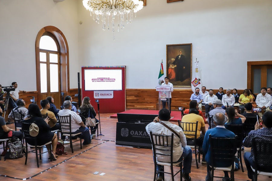 Al encabezar la conferencia Avances y Resultados de la Primavera Oaxaqueña, el Gobernador Salomón Jara Cruz expresó que este presupuesto se orienta a la compra y distribución de insumos agrícolas, de nutrición y control de plagas, campañas fitosanitarias, servicios profesionales de acompañamiento técnico, producción artesanal de semillas, establecimientos de bancos comunitarios, biofábricas, huertos escolares, mejoramiento genético y apoyos diversos al sector ganadero, acuícola y pesquero.