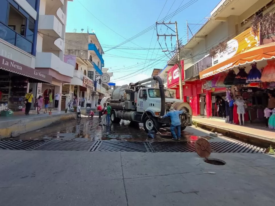 Los trabajos se efectúan en una longitud aproximada de 450 metros, con el equipo hidroneumático Vactor, para mejorar este servicio básico en beneficio de las familias de Santiago Pinotepa Nacional.