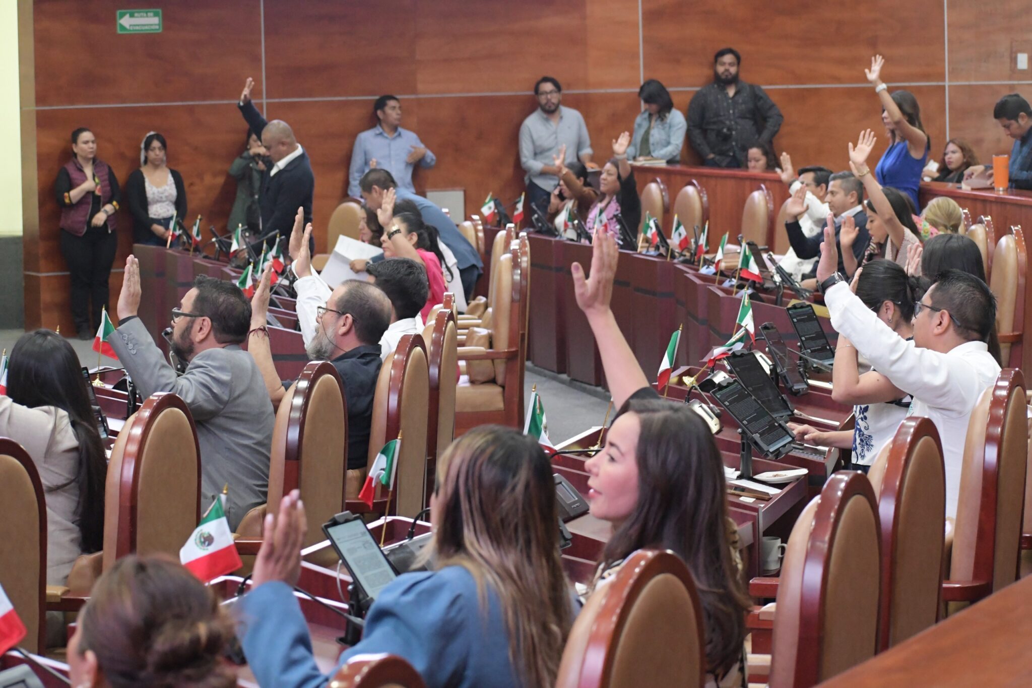 Con 34 votos a favor, el Pleno de la Sexagésima Sexta Legislatura del Congreso del Estado aprobó de urgente y obvia resolución un exhorto dirigido a los Ayuntamientos de Oaxaca que cuenten con sistema de semaforización, para que, en el ámbito de sus competencias, realicen el mantenimiento adecuado de dichos dispositivos en su circunscripción.