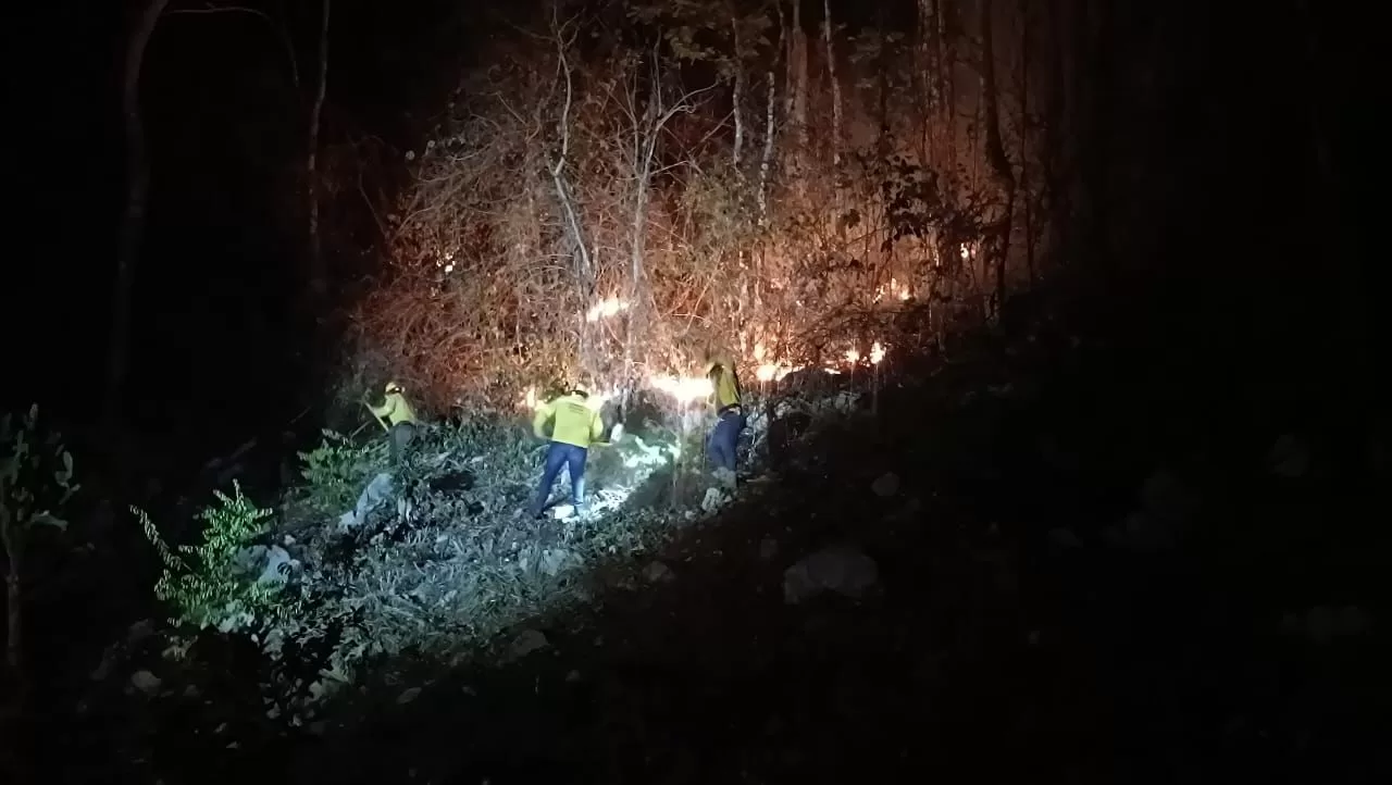 Personal técnico de la dependencia realizó en la zona labores de combate, control y liquidación mediante la apertura de brechas cortafuego y zanjas bordo en los perímetros del incidente, lo que permitió liquidar el fuego en 95 por ciento.
