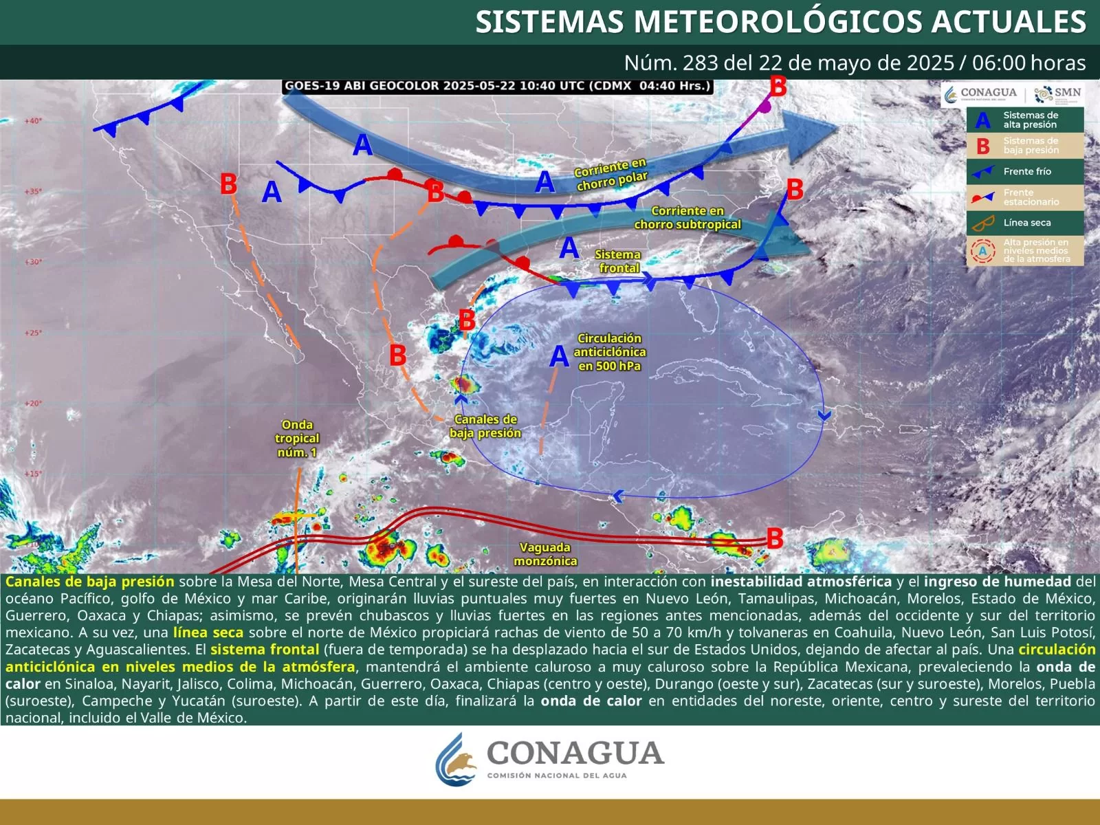 Oaxaca de Juárez, Oax. 22 de mayo de 2025.- La Coordinación Estatal de Protección Civil y Gestión de Riesgos (CEPCyGR) informa que, este jueves, el tiempo estará marcado por el término de la ola de calor debido al debilitamiento del anticiclón y a la presencia de mayor nubosidad desde primeras horas del día.