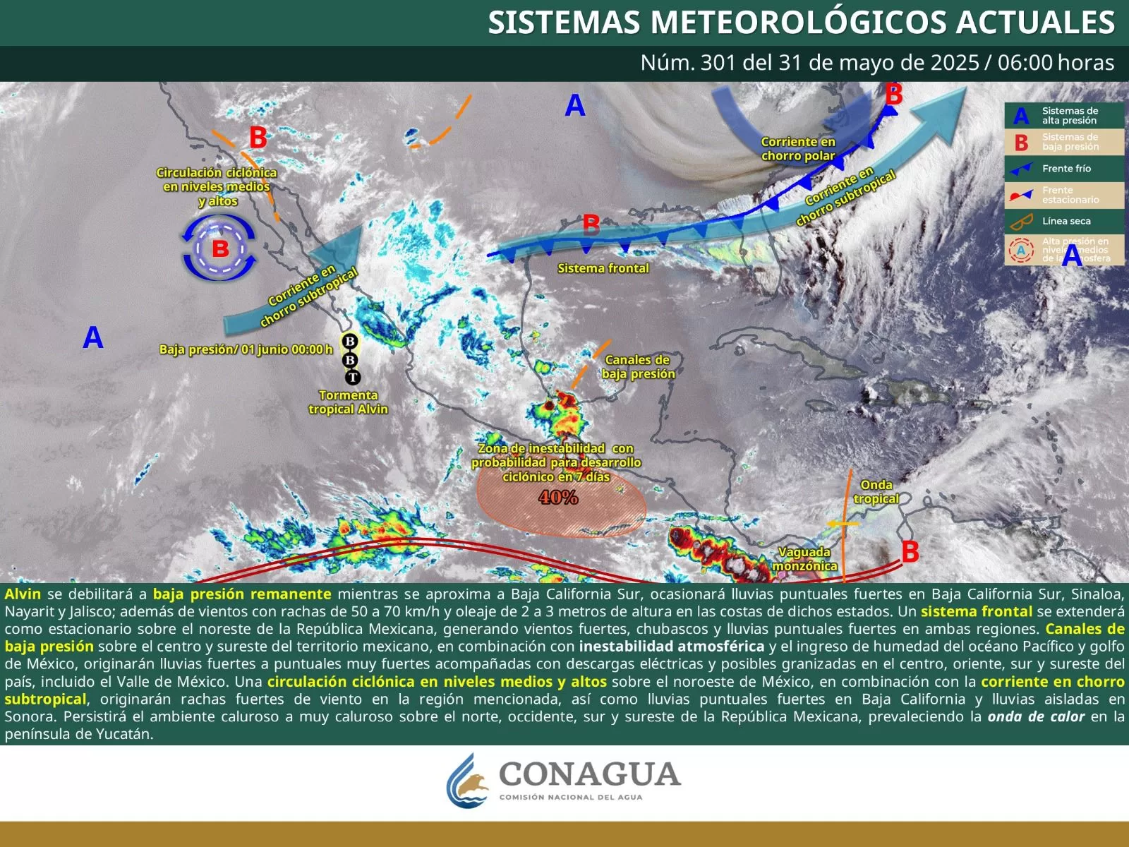 Oaxaca de Juárez, Oax. 31 de mayo de 2025.- La Coordinación Estatal de Protección Civil y Gestión de Riesgos (CEPCyGR) informa que, este sábado, continuará la inestabilidad atmosférica especialmente durante la tarde y noche, lo que desarrollará nubosidad baja en gran parte de la entidad, principalmente en zonas montañosas con lluvias, chubascos y tormentas fuertes, así como actividad eléctrica.