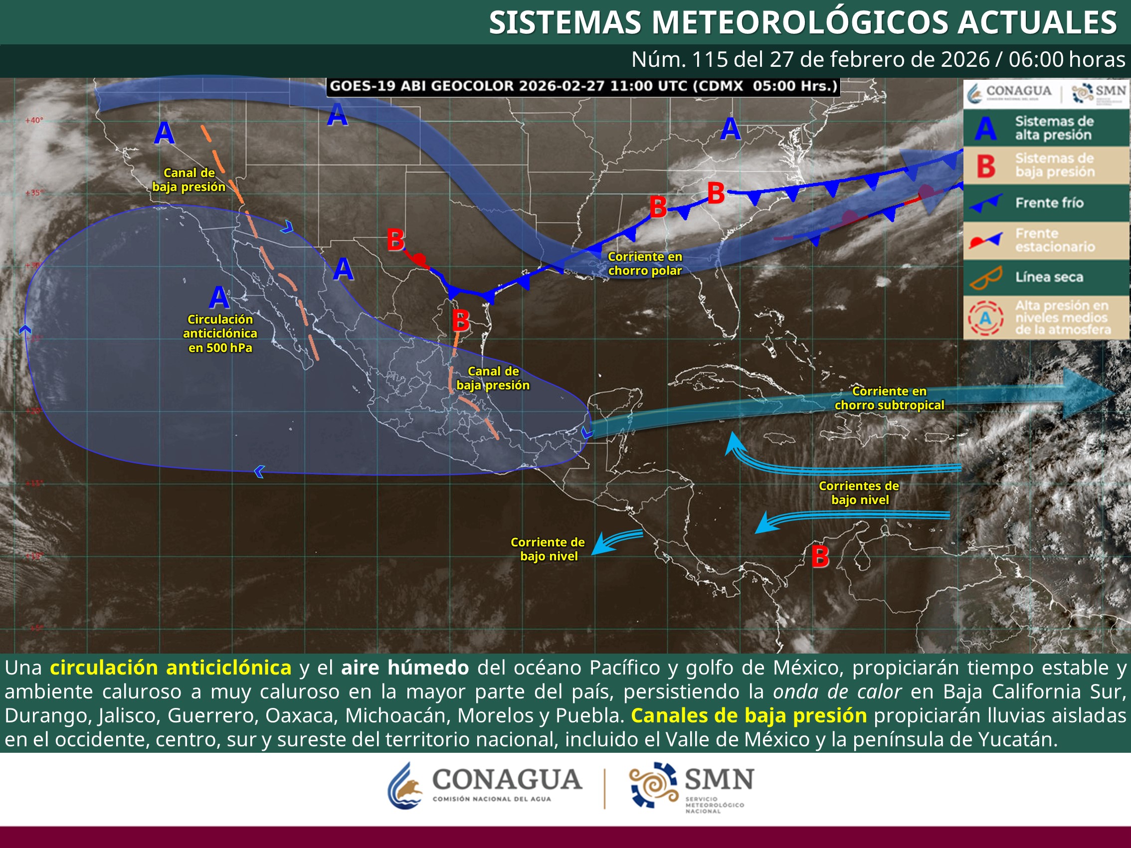 Estas condiciones son ocasionadas por la presencia de una circulación anticiclónica en niveles medios y altos de la atmósfera, la cual afecta a gran parte del estado.